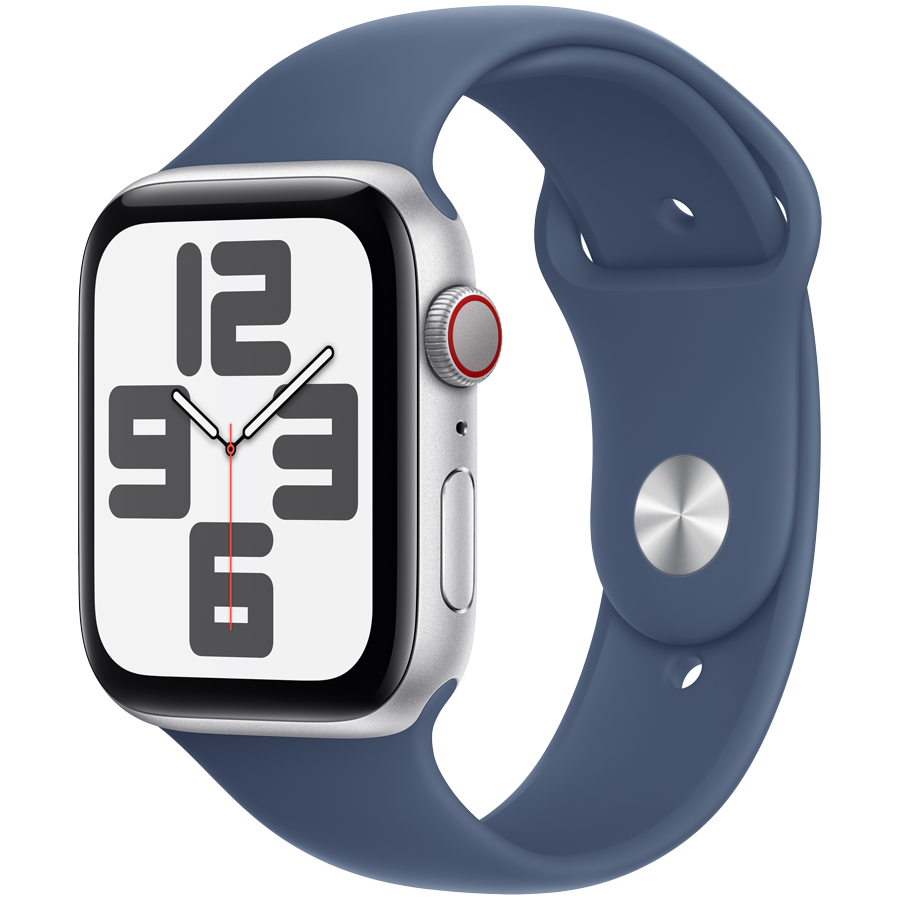 Apple Watch SE GPS + Cellular 44mm Silver Aluminium Case with Denim Sport Band – S/M,Model A2724