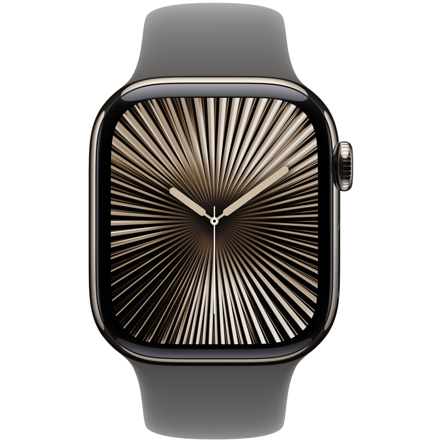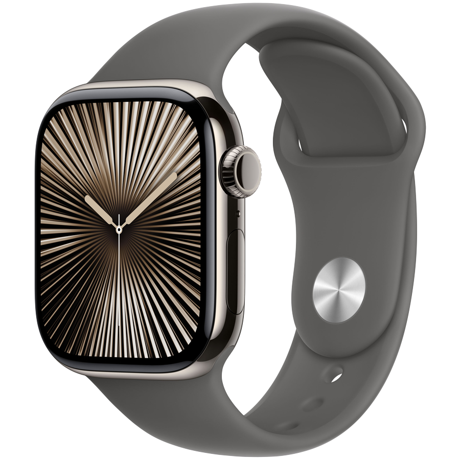 Apple Watch Series 10 GPS + Cellular 42mm Natural Titanium Case with Stone Grey Sport Band – S/M,Model A3001