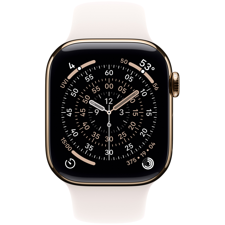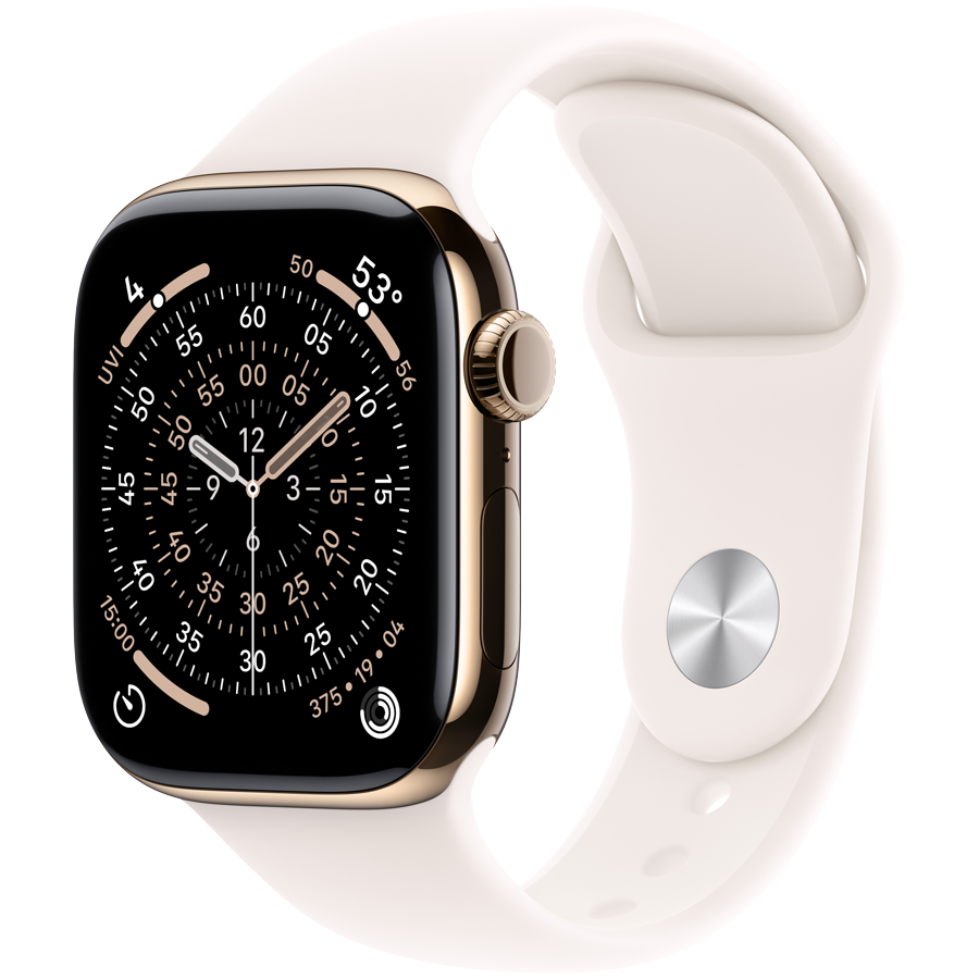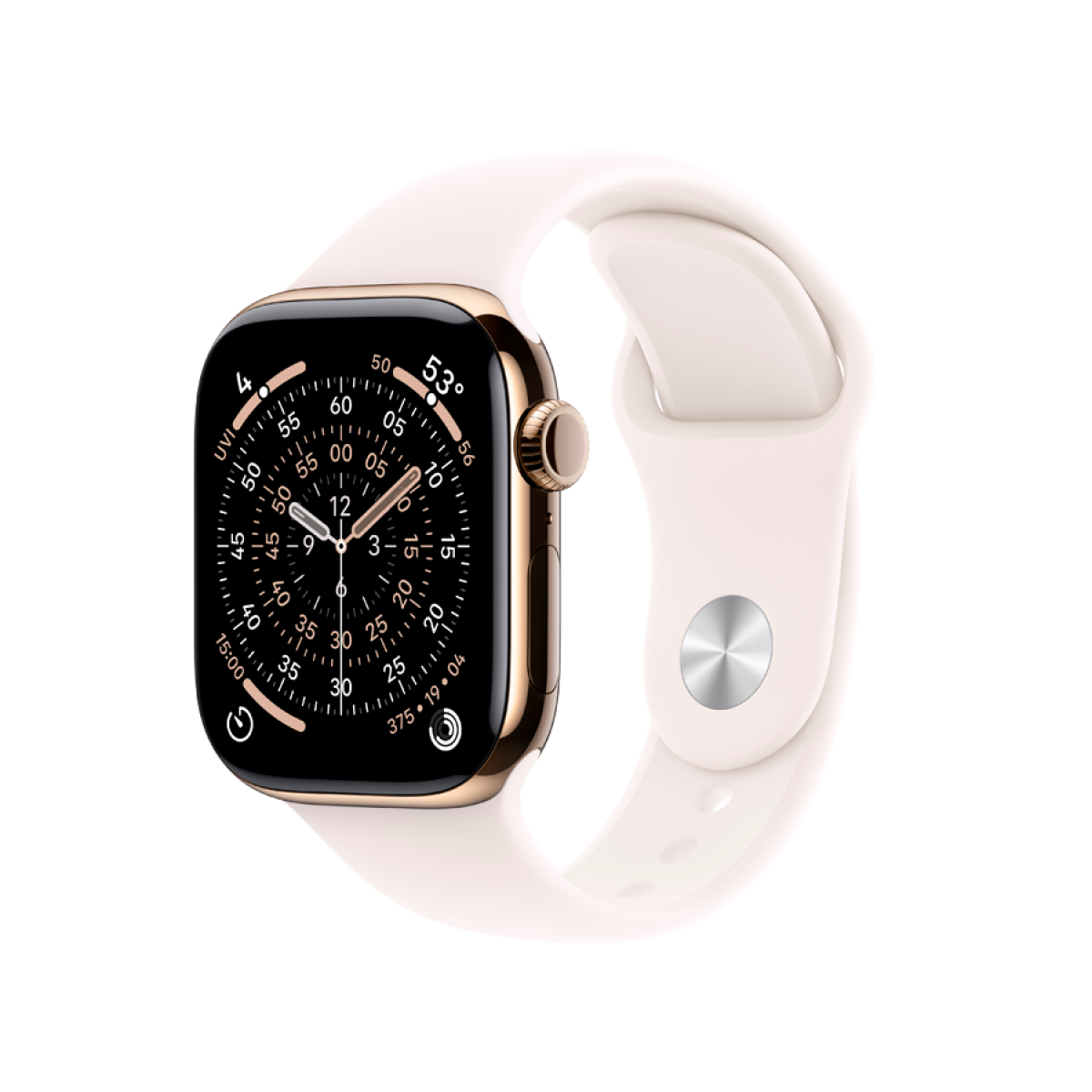 Apple Watch Series 10 GPS + Cellular 46mm Gold Titanium Case with Starlight Sport Band – S/M,Model A3003