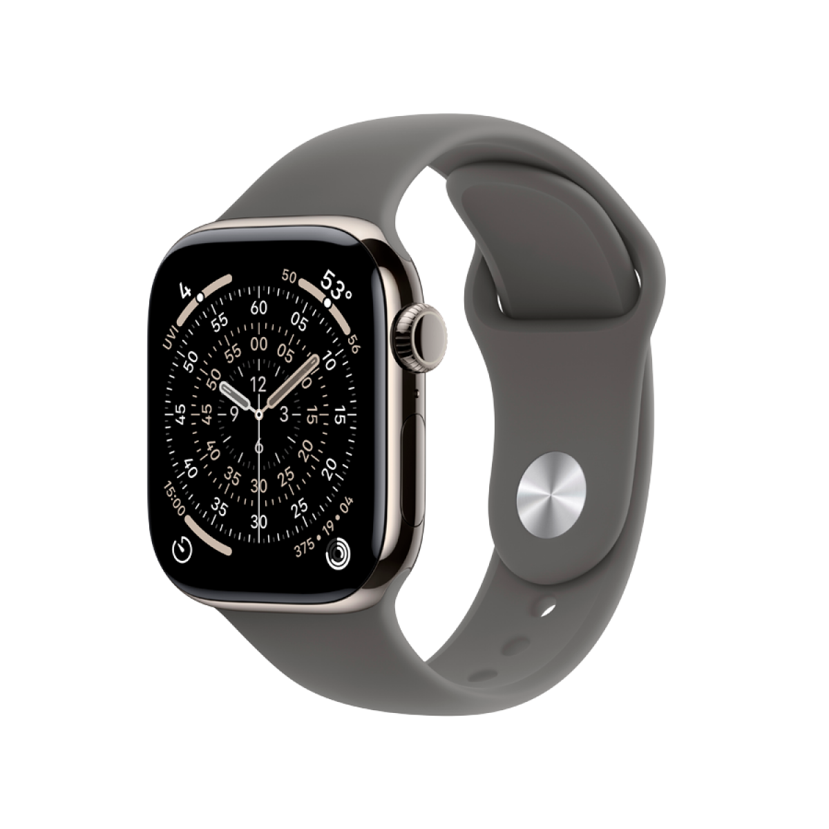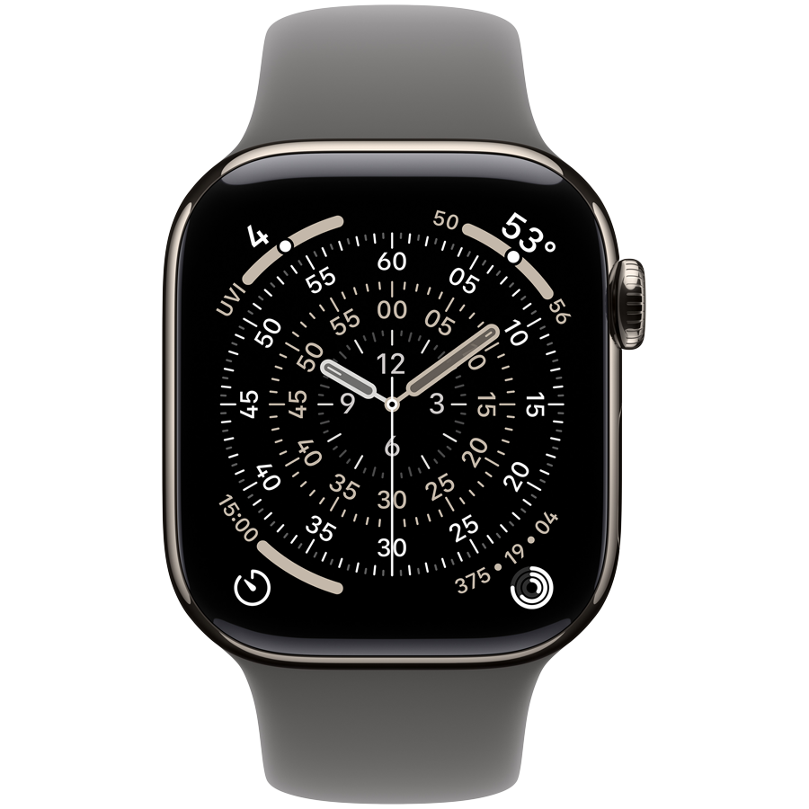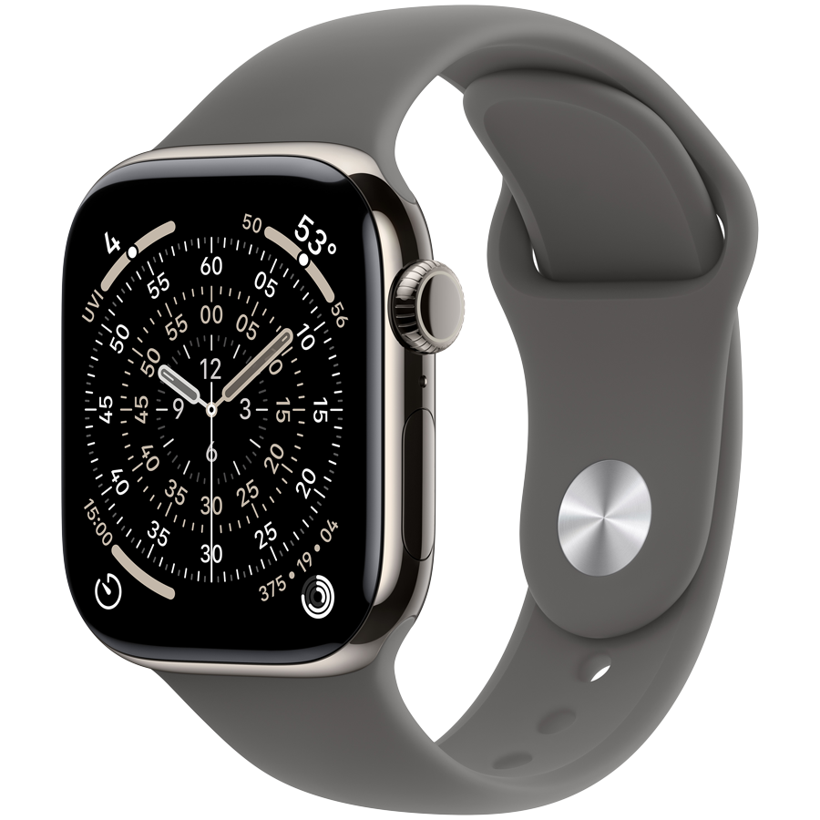Apple Watch Series 11 GPS + Cellular 42mm Natural Titanium Case with Stone Grey Sport Band – S/M,Model A3335