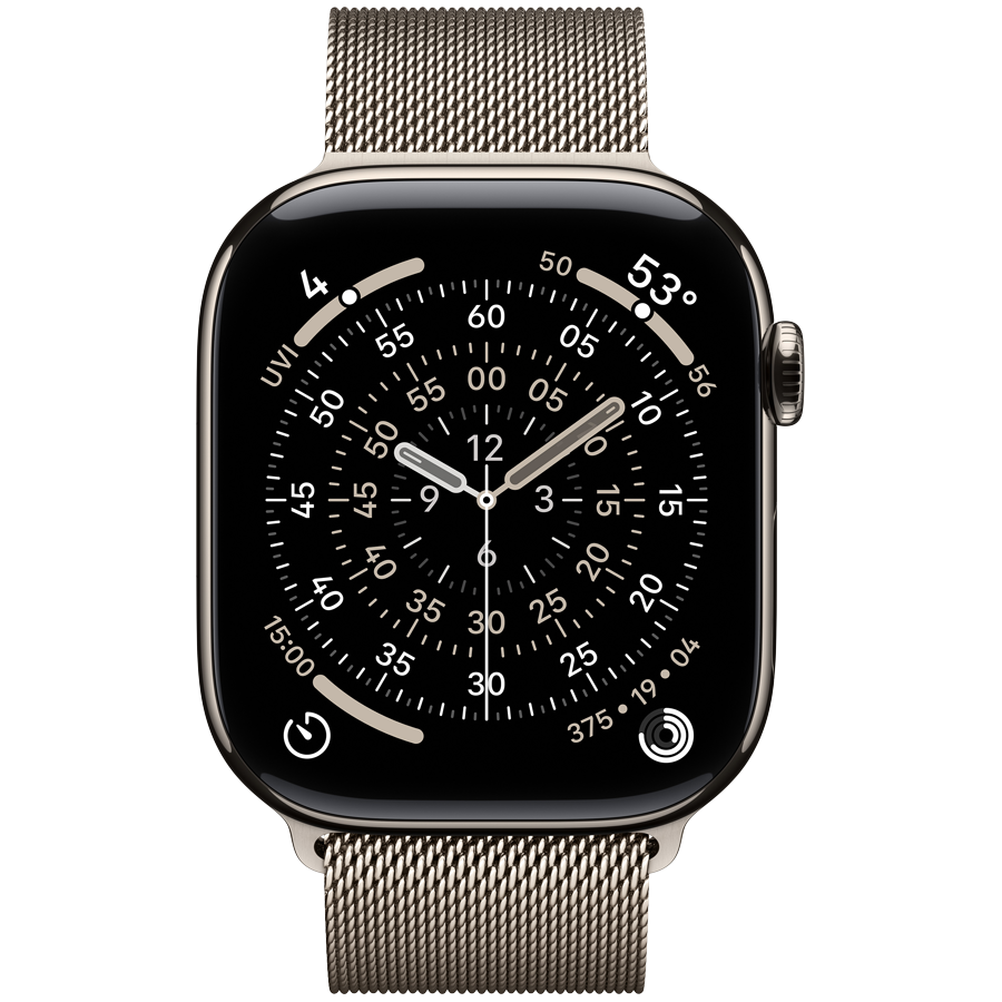 Apple Watch Series 11 GPS + Cellular 46mm Natural Titanium Case with Natural Milanese Loop – M/L,Model A3337